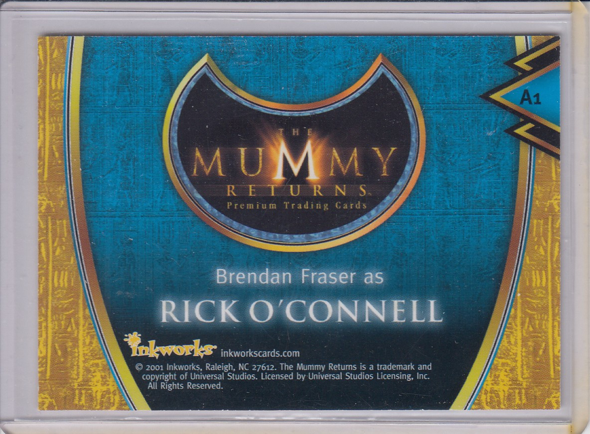 The card features a dynamic still of Fraser in character, bringing to life the daring explorer who battled Imhotep and uncovered timeless mysteries of ancient Egypt. Printed on high-quality stock, this piece is an essential highlight for fans of the films and collectors of Hollywood memorabilia.