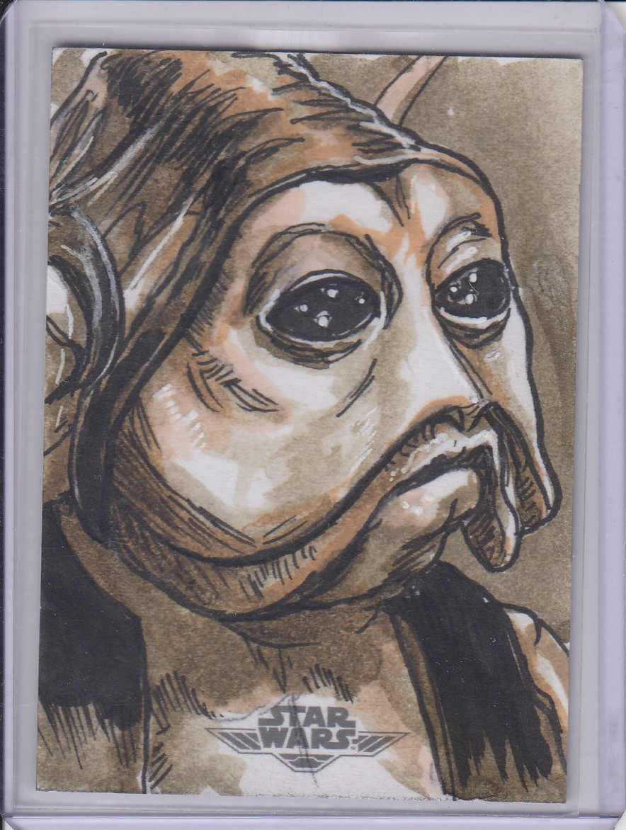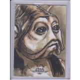 This one-of-a-kind, hand-drawn sketch card features the iconic Mon Calamari leader Admiral Ackbar, best remembered for his pivotal role in Star Wars: Return of the Jedi (1983).