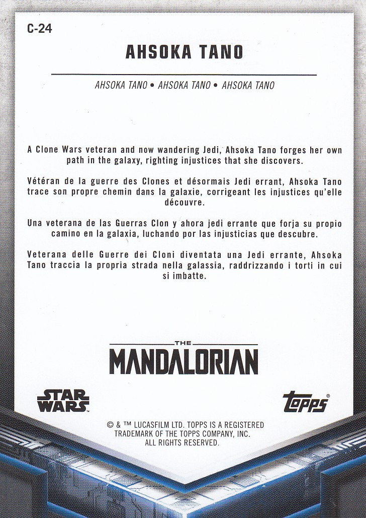 This collectible insert card showcases Ahsoka Tano, the fan-favorite former Jedi Padawan of Anakin Skywalker, as she appears in The Mandalorian Season 2. Released in 2021 by Topps as part of the Star Wars: The Mandalorian Seasons 1 & 2 trading card set, this Gold Foil Parallel edition highlights Ahsoka’s live-action debut with stunning metallic detail.