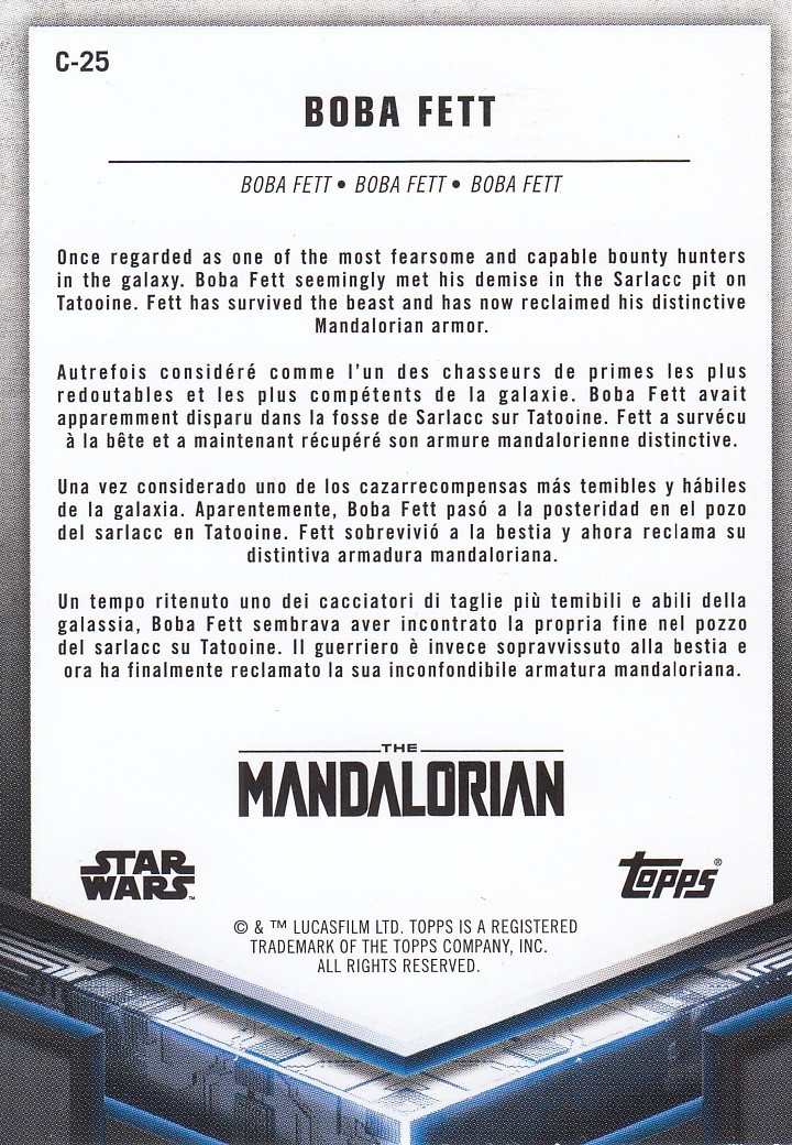 Depicting Boba Fett’s return to live-action glory complete with his restored Mandalorian armour and renewed purpose. This card celebrates the character’s powerful presence and legacy within the Star Wars universe.