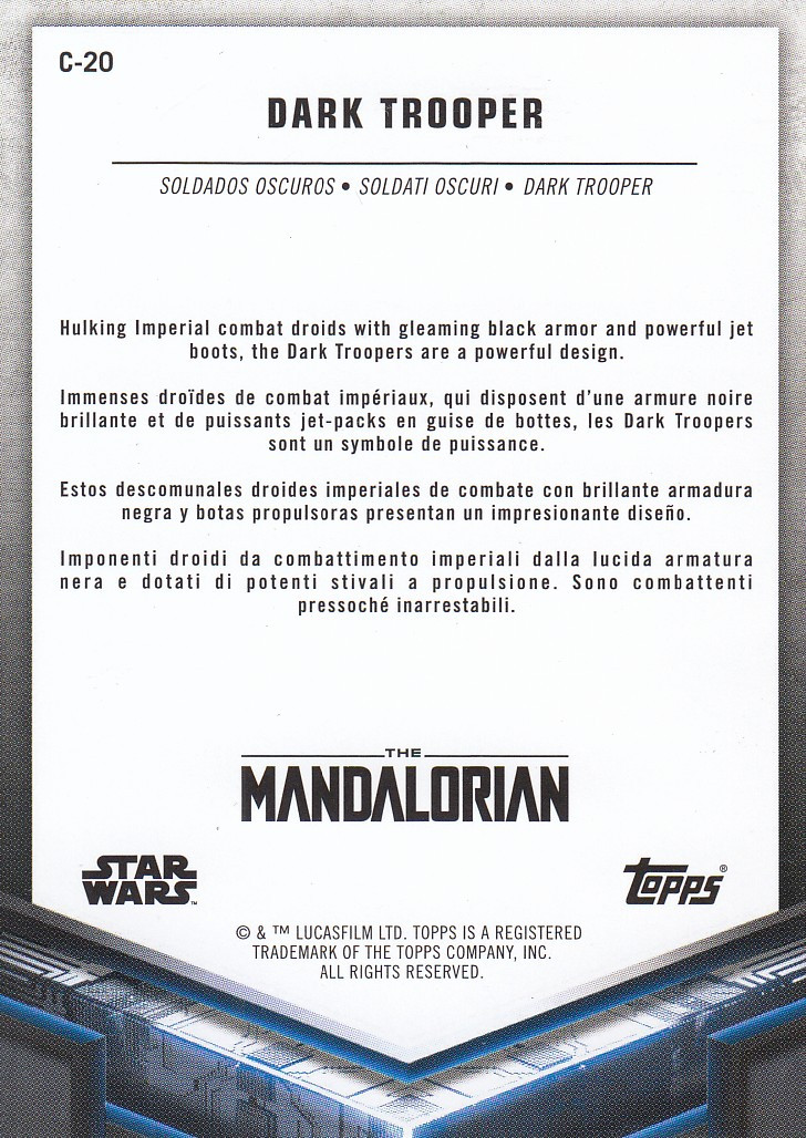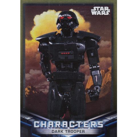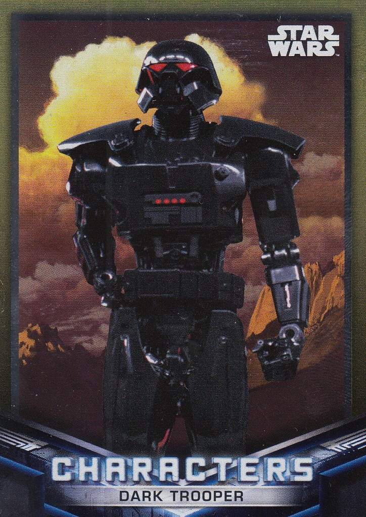 This striking insert card features the menacing Dark Troopers, the next-generation battle droids deployed by Moff Gideon in The Mandalorian Season 2. Released in 2021 by Topps as part of the Star Wars: The Mandalorian Seasons 1 & 2 trading card set, this Gold Foil Parallel edition highlights these formidable Imperial weapons in bold, metallic detail.