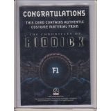 Expertly crafted on high-quality stock and featuring a bold image of Diesel in character, this costume card is a must-have centerpiece for fans of the Riddick franchise and collectors of authentic screen memorabilia.