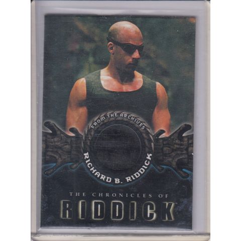 This rare costume card contains an authentic swatch of the T-shirt worn by Vin Diesel in his iconic role as Richard B. Riddick in The Chronicles of Riddick (2004).
